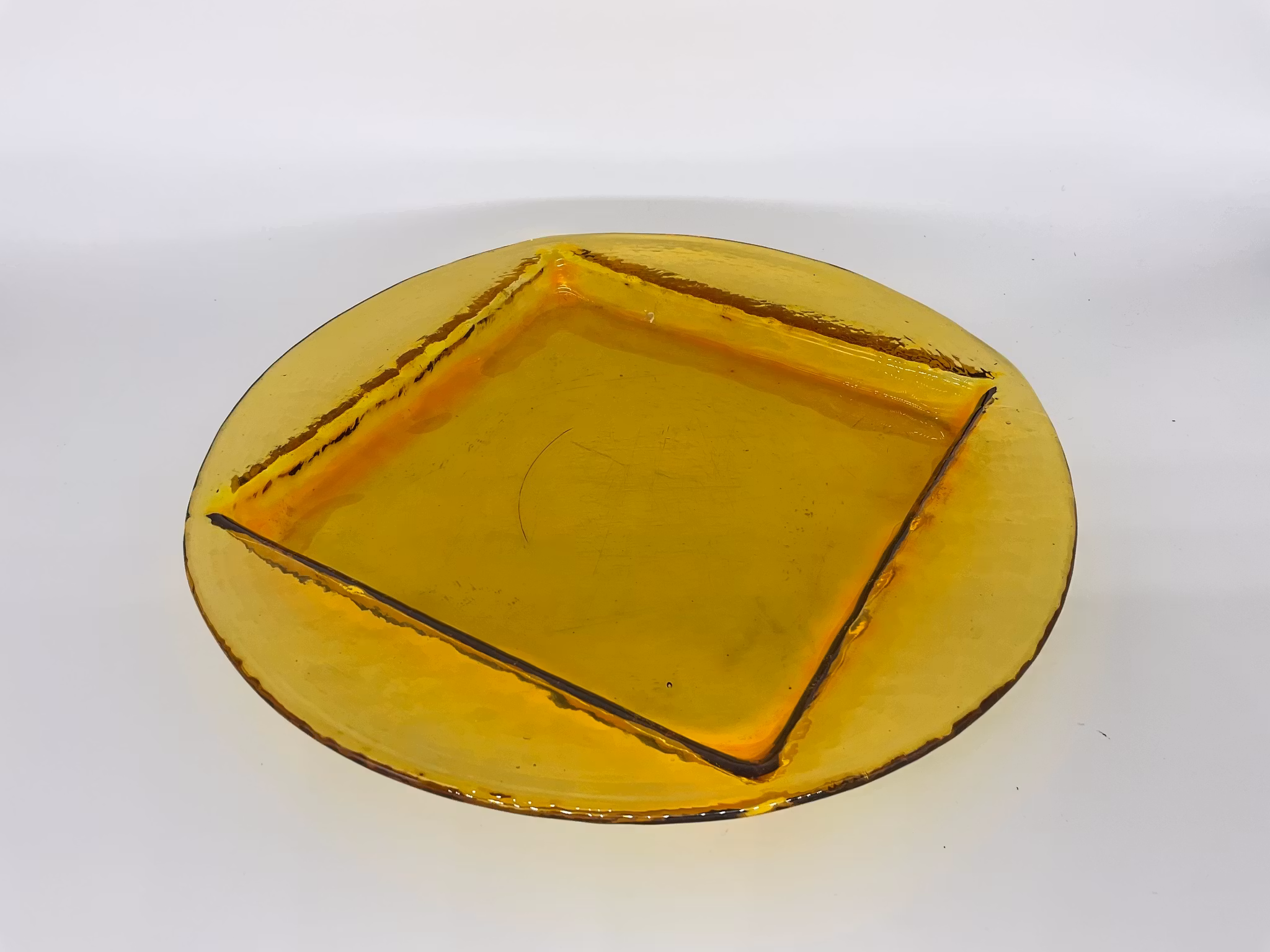 Tallrikar ur serien Gösta med Gösta i bärnstensfärgat glas, 27 cm øanvänt skick