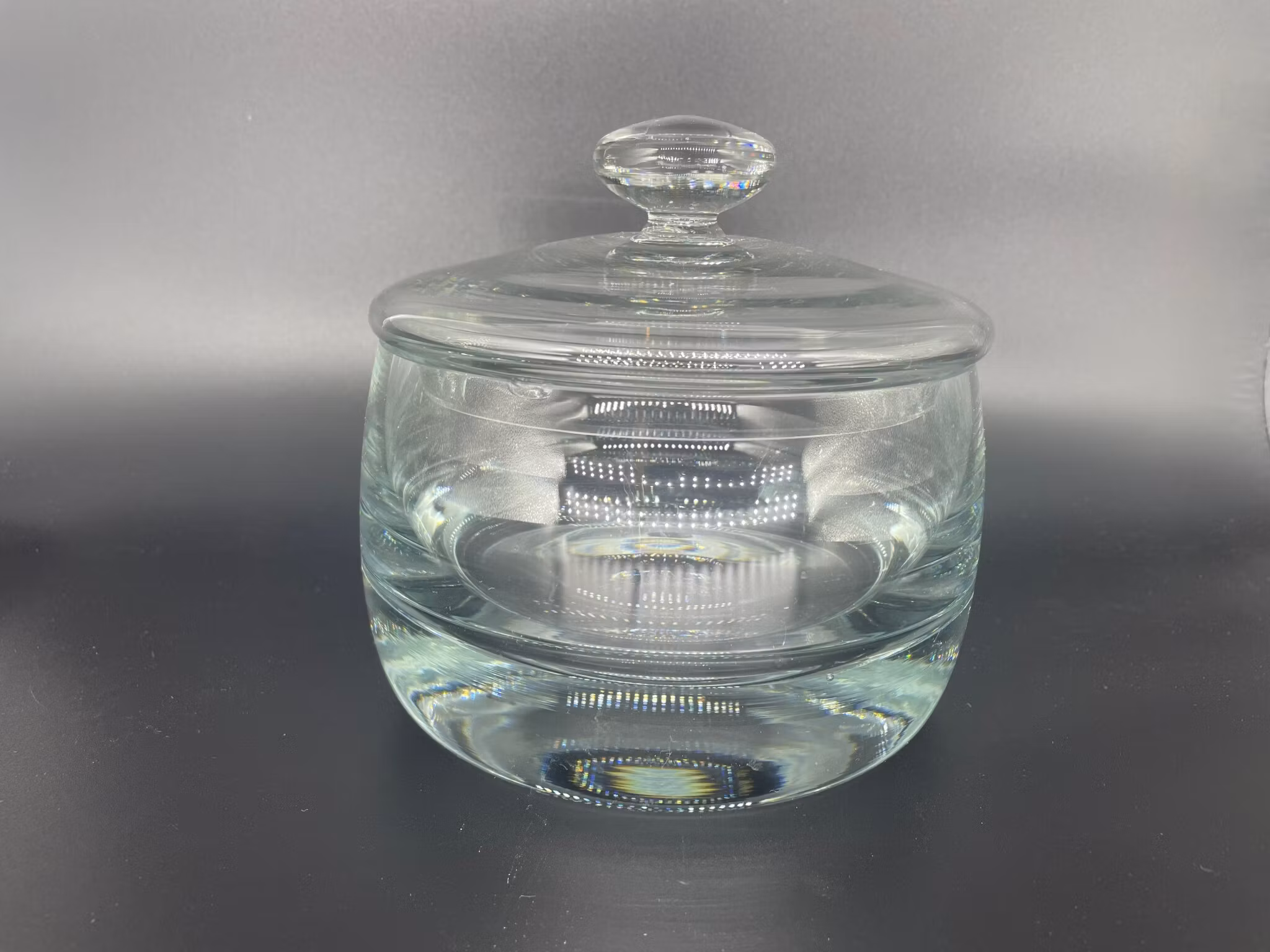 Bonbonniere i polsk kristall. Liten flisa, se bild.höjd ca 17 cmca 16 cm diameter